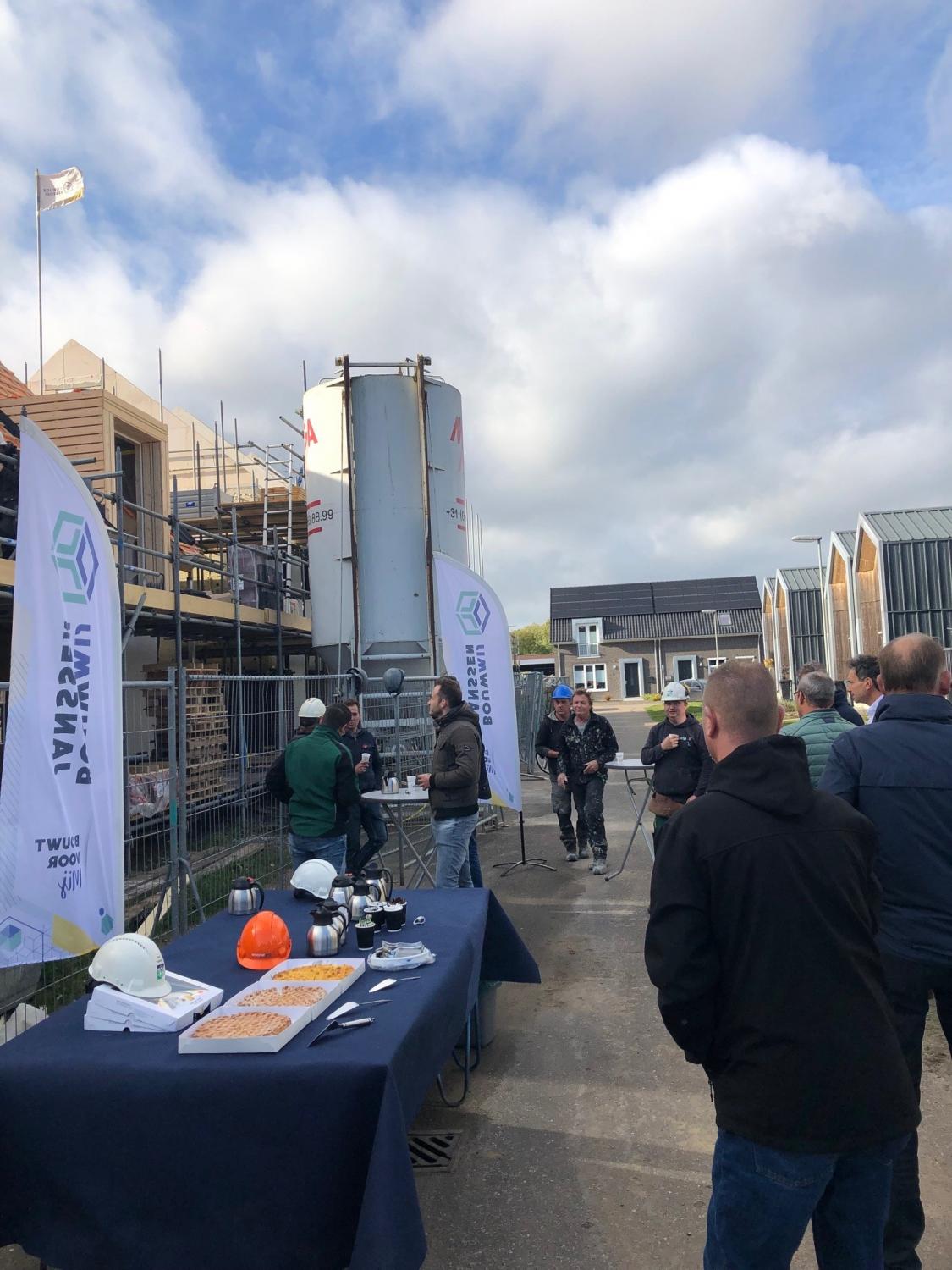 Het hoogste punt bij nieuwbouwproject 9 woningen in America is bereikt en dat mag gevierd worden. Als blijk van waardering kregen alle bouwplaatsmedewerkers een boodschappenpakket aangeboden door opdrachtgever Woonwenz. Bedankt voor deze leuke attentie!