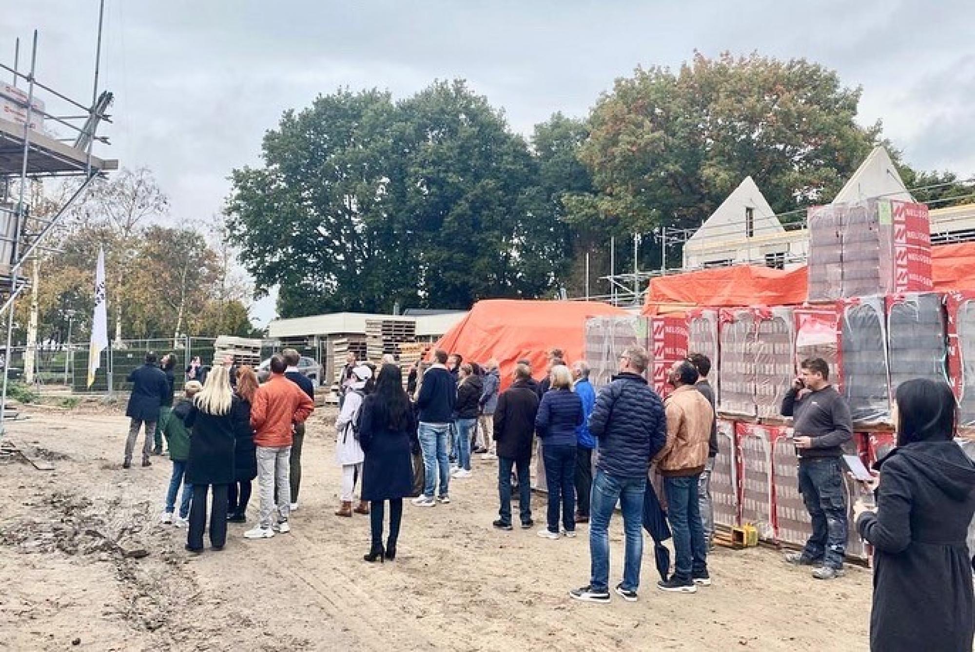 Deze week werd het hoogste punt bereikt bij project 17 woningen ‘Dommelsquash’ in Dommelen. Opdrachtgever Keersop Projectontwikkeling organiseerde een feestelijke bijeenkomst op de bouwplaats en onder het toeziend oog van de wethouder, de opdrachtgever en de toekomstige bewoners ging de vlag in de top.