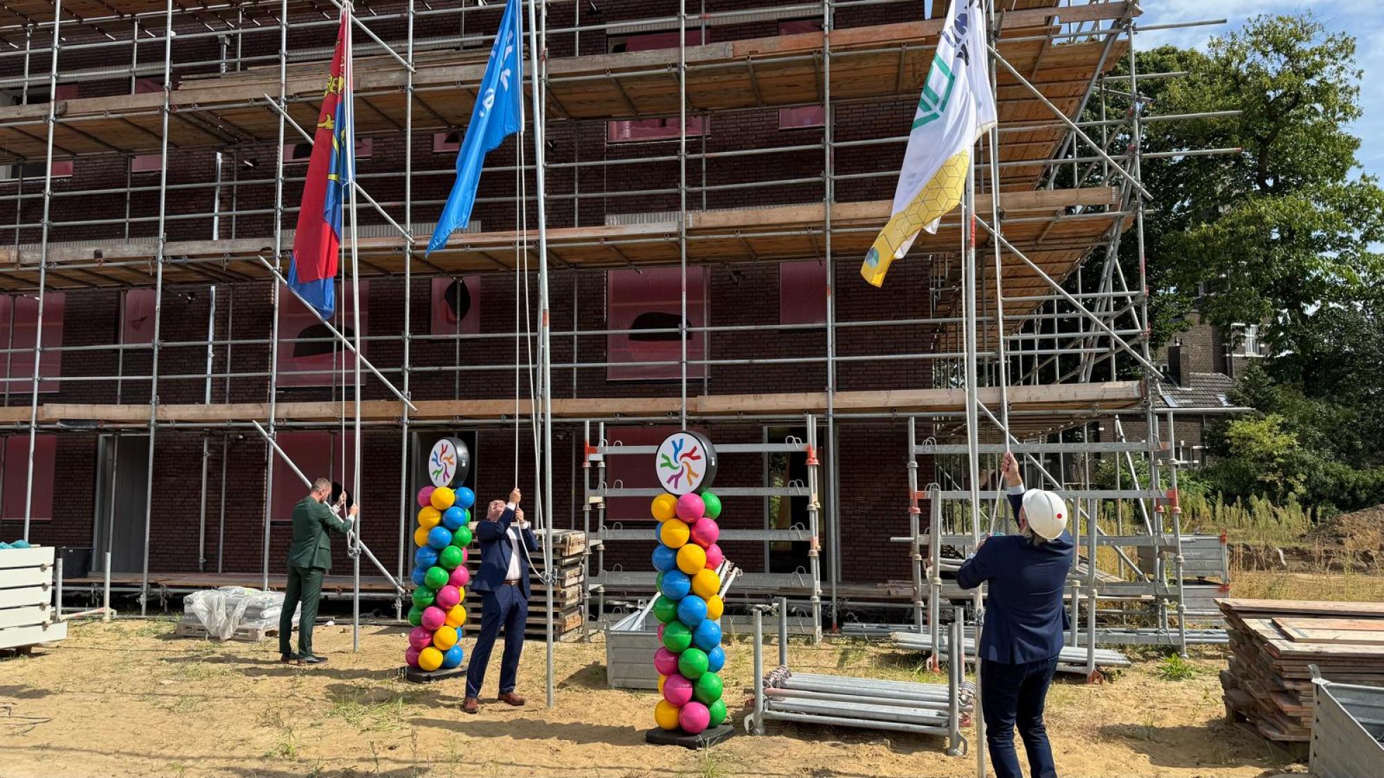 Een mooie mijlpaal voor ons project Boschkamp in Tegelen: het hoogste punt is bereikt en dit hebben we groots gevierd! Vanwege de warmte werd het moment verplaatst, maar dat mocht de feestvreugde niet drukken. Samen met huurders, kopers en bouwplaatsmedewerkers vierden we dit bijzondere moment. Na een woord van welkom door Roel Versleijen namens Antares, werden er mooie woorden gesproken door wethouder Tom Verhaegh namens Gemeente Venlo en Geert Martens namens Bouwmij Janssen. Symbolisch werden drie vlaggen gehesen, een moment van trots voor iedereen die betrokken is bij dit project. De bouwplaatsmedewerkers ontvingen een attentie namens Antares en we sloten gezamenlijk af met een lekker frietje op de bouwplaats.