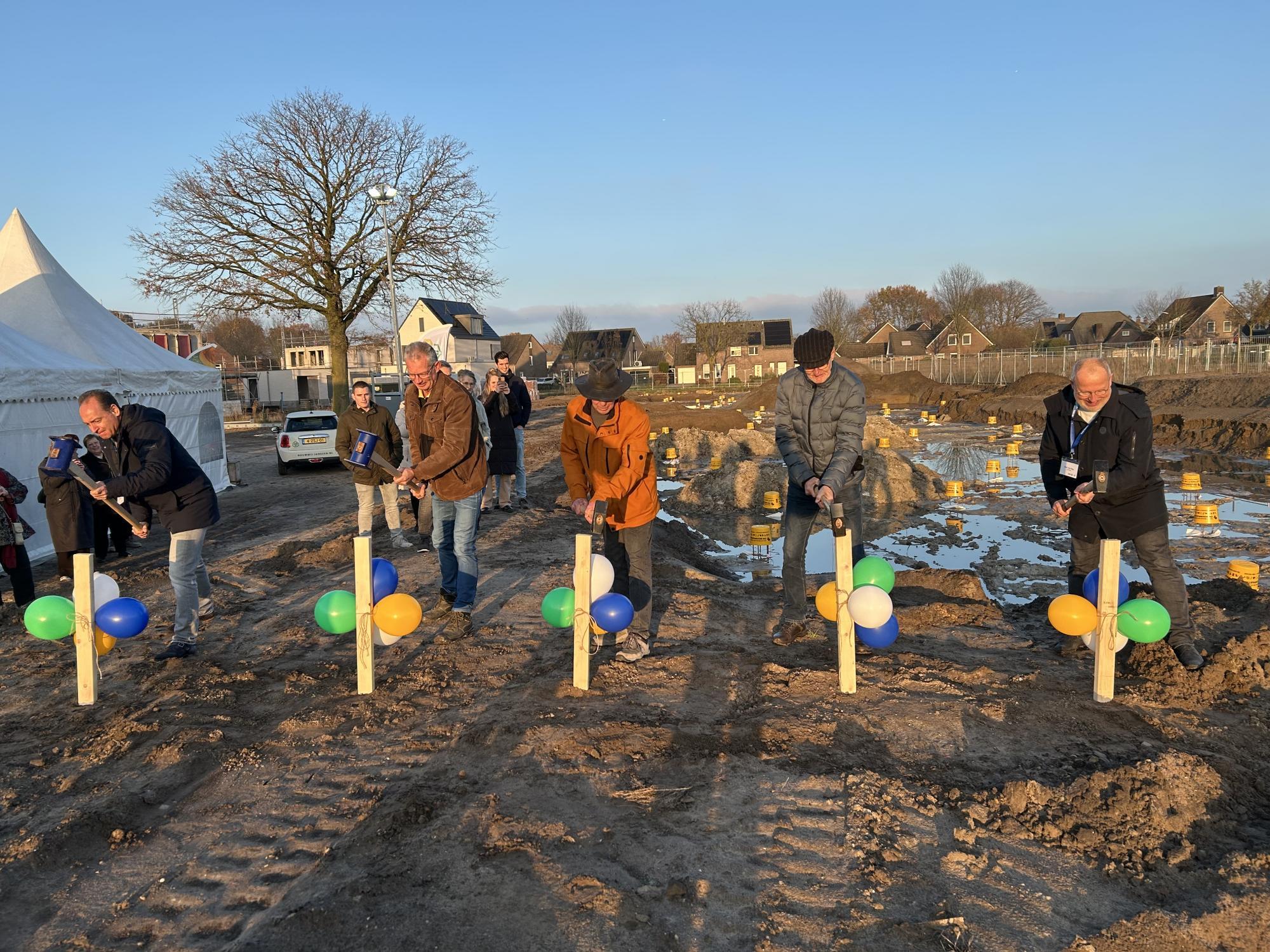 In de middag stond de officiële aftrap van fase 3 op het programma samen met de toekomstige bewoners. Na een inspirerend welkomstwoord van de projectleider en ontwikkelaar en een mooi gedicht door de directie, was het tijd voor het symbolische moment: samen met drie van de kopers sloegen we de eerste piketpalen in de grond. De middag werd afgesloten met een gezellige borrel, waarbij er onder het genot van een drankje en een hapje nagepraat werd. We kijken uit naar de volgende stappen in dit prachtige project!