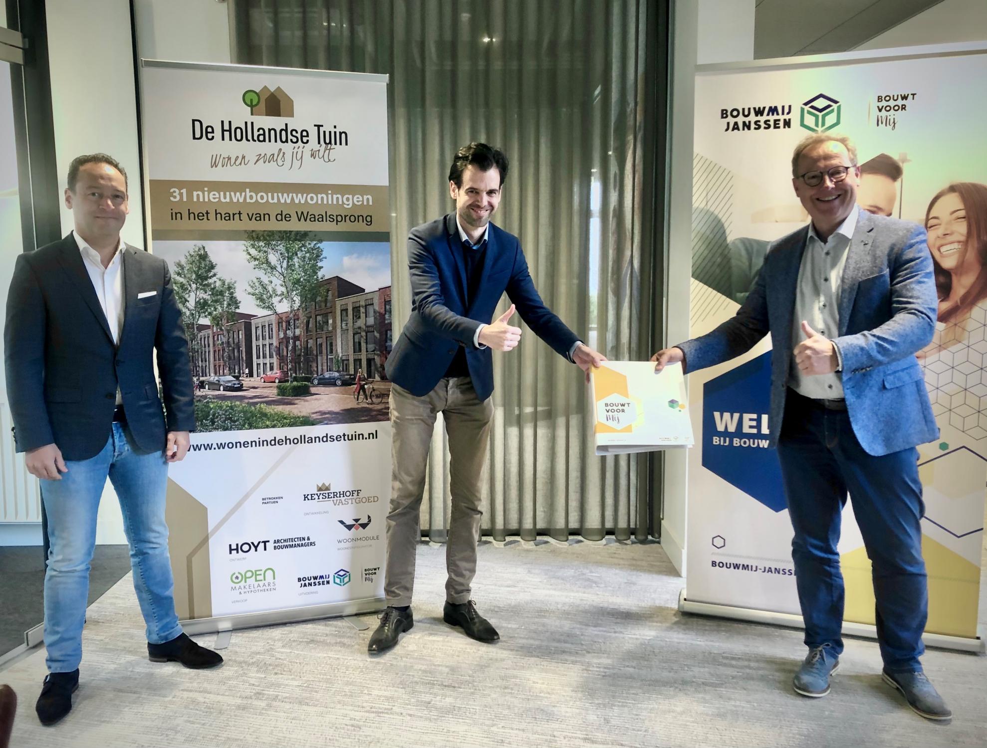 Weer een mooi project voor ons in het vooruitzicht; vandaag hebben wij de overeenkomst getekend met Keyserhoff Vastgoed voor de realisatie van het project 'De Hollandse Tuin' bestaande uit 31 nieuwbouwwoningen in het hart van de Waalsprong. De start van de verkoop is gepland in juni/juli dit jaar en de bouw van het project staat gepland begin 2022. Wij wensen iedereen veel succes met de verkoop, de voorbereiding en de realisatie van dit mooie project in Nijmegen!