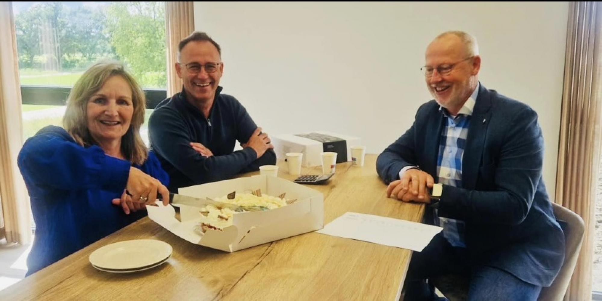 Een mooi begin van deze week: in Veulen gaan we 10 starterswoningen realiseren (één rij van vier en drie twee-kappers). De samenwerking met opdrachtgever Timmermans is officieel bezegeld en daarom mag de taart worden aangesneden! We verwachten met de bouw te starten in het laatste kwartaal van dit jaar en op te leveren rond de bouwvak van 2025. Onze woningen vormen het sluitstuk van uitbreidingsplan Vaerloe.