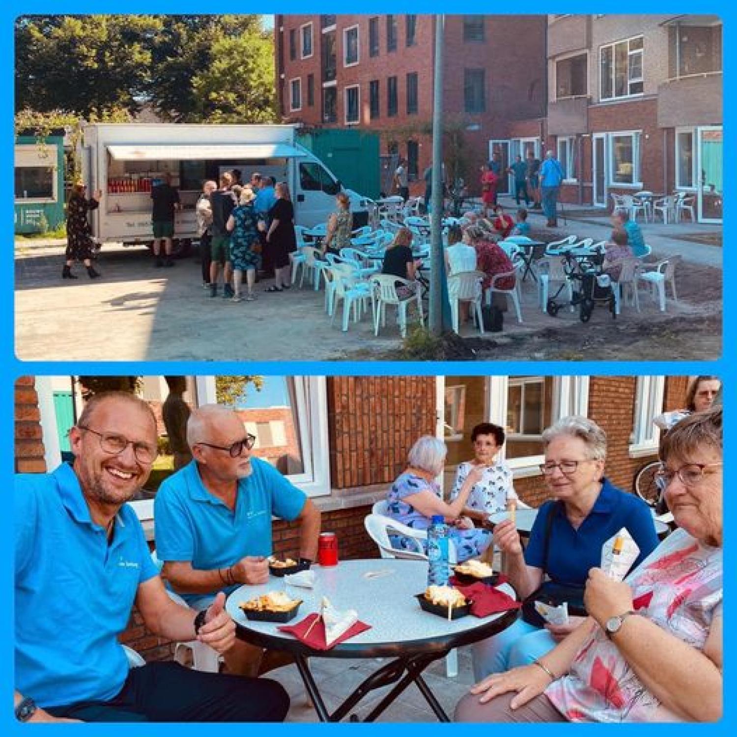 Stralend weer, tevreden gezichten, lekker frietje.... dat waren zo ongeveer de ingrediënten voor de gezellige samenkomst vanmiddag in Weert. Vanaf februari zijn wij bezig met de transformatie van twee bedrijfsruimtes naar appartementen. Omdat dit niet zonder overlast kan, heeft Wonen Limburg als ‘dank je wel voor begrip en geduld’ zowel de omwonenden als onze medewerkers getrakteerd op een frietje en een snack. Een bijzonder vriendelijk gebaar wat bij iedereen letterlijk en figuurlijk goed in de smaak viel. Bedankt, Wonen Limburg!